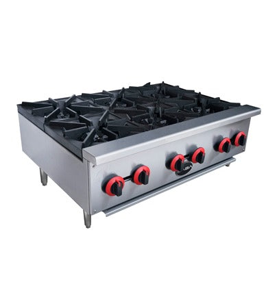 SABA HP-6 Gas Hot Plate – 6 Burners, 25,000 BTU Each, Stainless Steel, Natural Gas/Propane