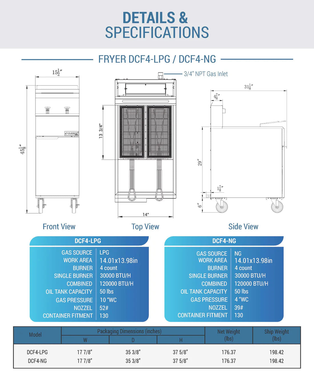 - The temperature for the DCF4-LPG/DCF4-NG ranges from 200°F (93°C) to 400°F (204°C). Includes Millivolt safety control system.