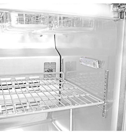 Analog temperature control maintains a 33–41°F range to ensure ingredients remain fresh and safe. Self-closing doors with a 90-degree stay-open feature enhance workflow efficiency, while removable magnetic door gaskets simplify cleaning and maintenance. The insulated top rail lid retains cold air, improving energy efficiency and maintaining optimal freshness.
